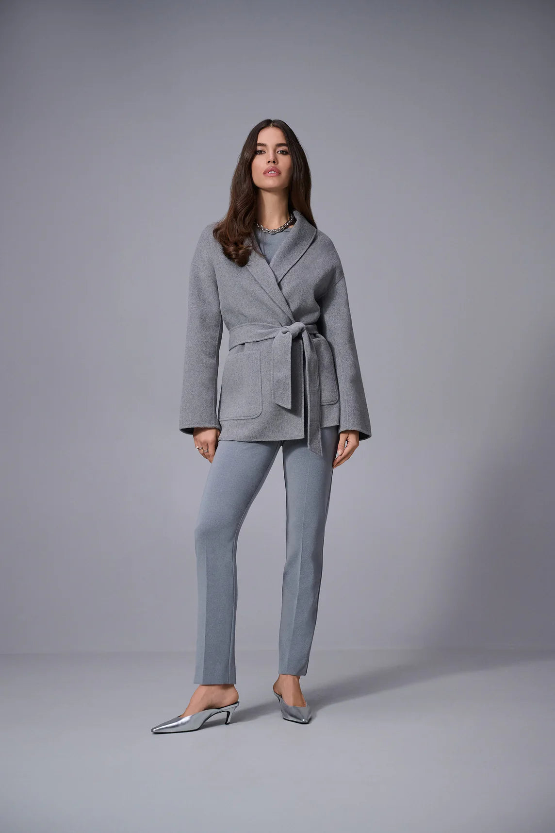 Joseph Ribkoff Grey Melange Silky Knit Straight Leg Pull-On Pants Style 253295