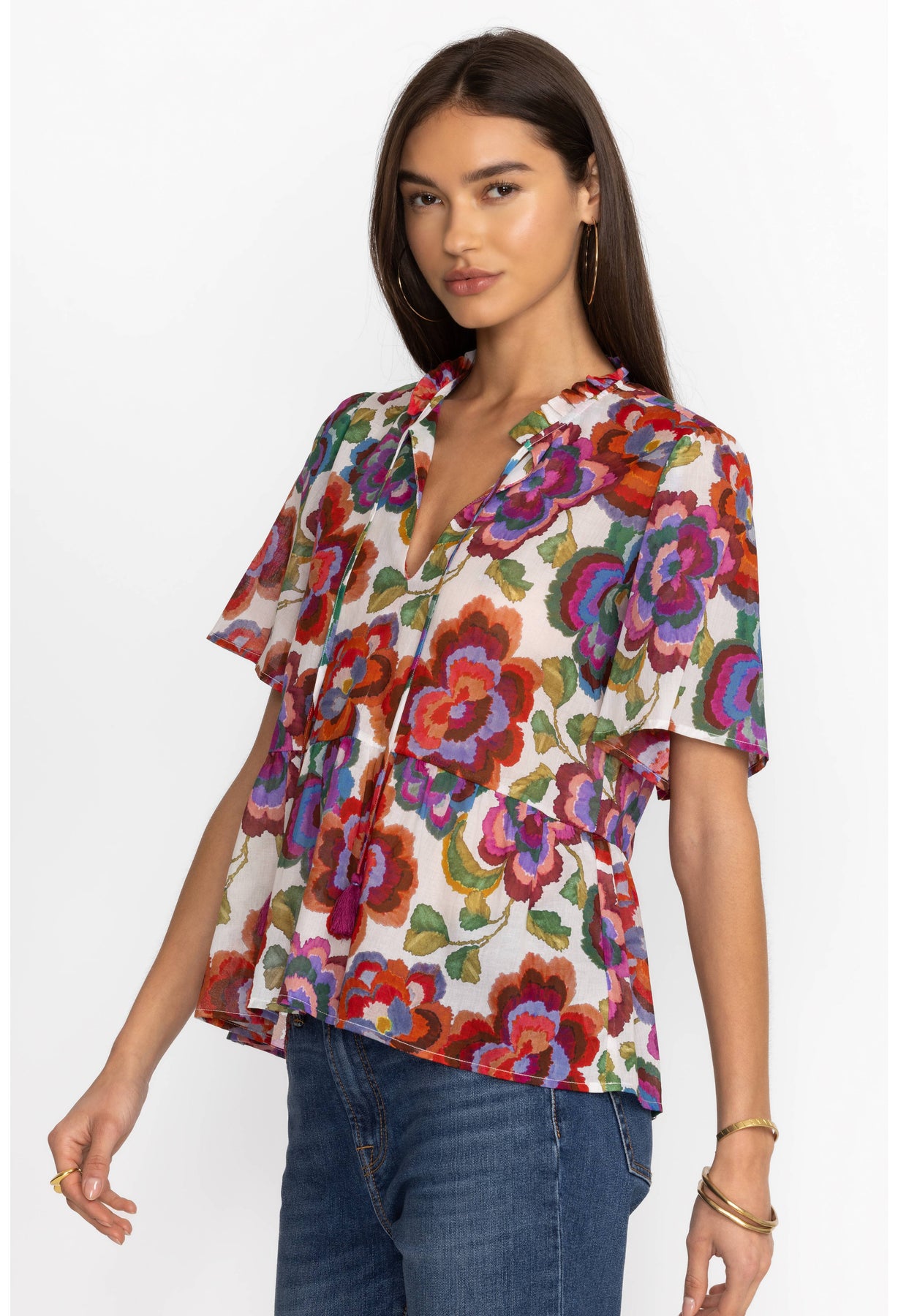 Johnny Was Calanthe High Low Empire Waist Top Pose